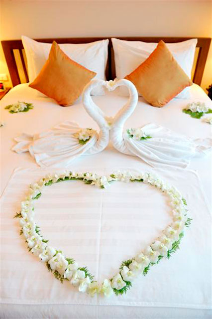 挙式当日のお部屋の装飾、挙式翌日の朝食ルームサービス