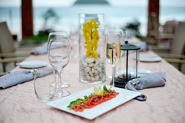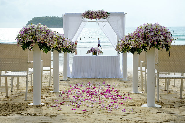 ボートハウスはプーケット島の落ち着いた雰囲気のカタビーチの南端に位置するホテルです。挙式会場はホテルの敷地内のビーチの上で、天候に恵まれれば、ビーチから見える離れ小島の後ろに夕日が沈む景色を見ることができます。白い砂浜から見渡すアンダマン海の眺めとビーチの上のフラワーデコレーションはアンダマンシーウエディングの代表例です。また、5つ星レストランで一流雑誌に掲載され、幾度も賞を受賞している併設レストラン『BOATHOUSE WINE&GRILL』での夕食は特別な日の最高の締めくくりとなるでしょう。