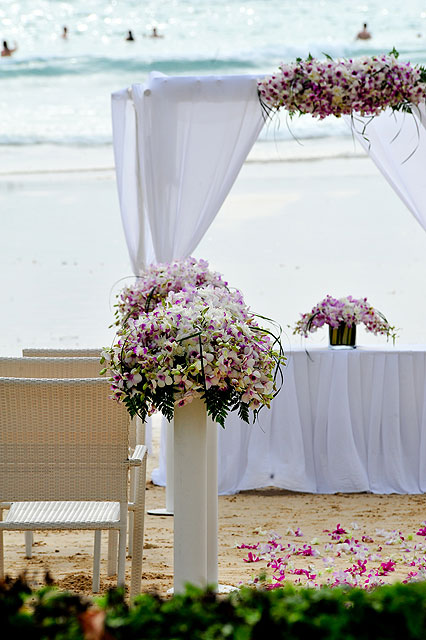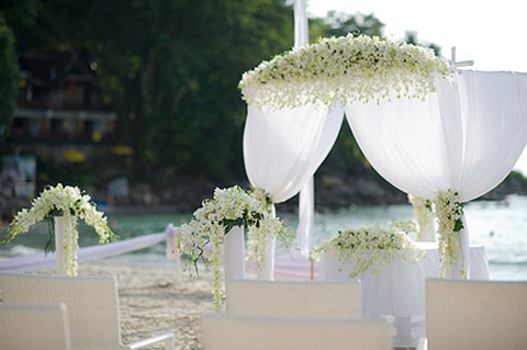 ビーチの上のフラワーデコレーション アンダマンシーウエディング ビーチの挙式会場