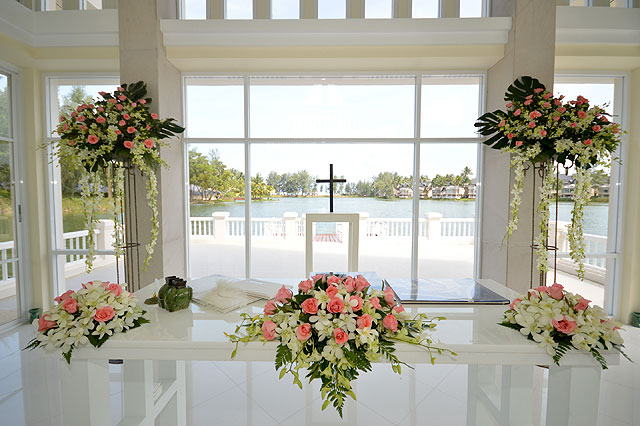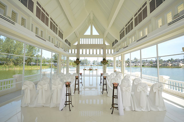 ラグーンに浮かぶように建てられたチャペルは高級リゾートエリア、ラグーナ地区に位置します。白で統一されたチャペルでの挙式はおとぎ話のような雰囲気です。ガラス張りの壁を通してラグーナ地区の景色を一望することができ、室内にいながら外の景色と一体感を持ちながら挙式を行うことができます。ラグーナ地区のホテルからボートにてチャペルへ移動可能でラグーナ地区ならではの挙式の演出ができることもポイントです。