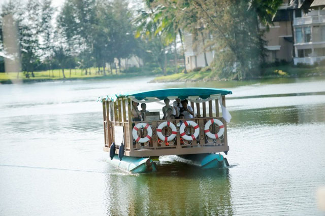 ボートにてホテルへ