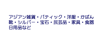 昨今、日本でもアジア各国からの輸入商品が数多く流通し、またアジア雑貨や民芸品など特徴ある商品を小売店でも目にする機会が増えている事と思います。弊社では、これらの商品を現地より卸値で仕入れ・買付けし、その卸値でお客様へご提供します。このサービスは、お客様のニーズに答える新時代の流通システムです。